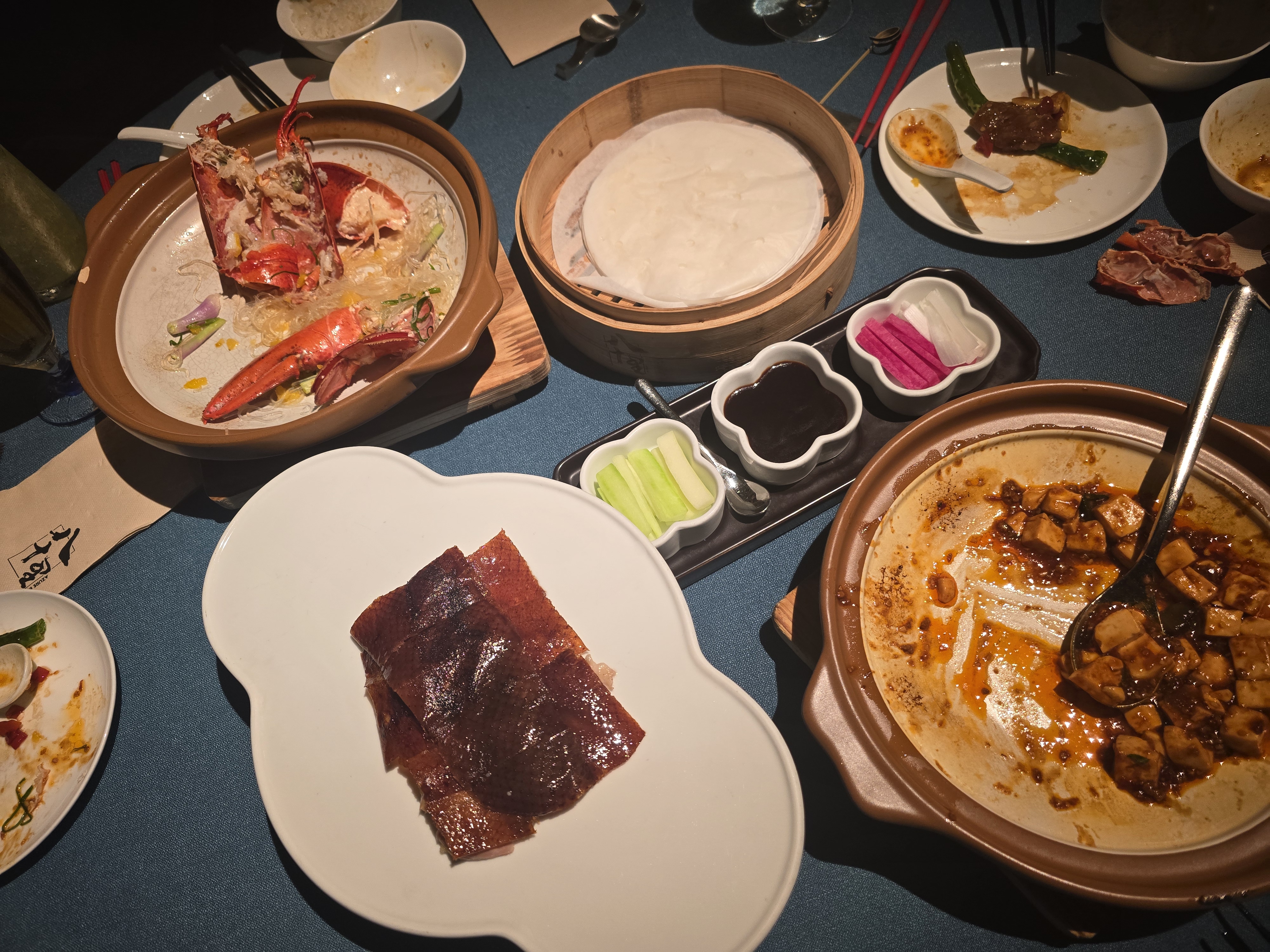돼지고기 볶음, 샤오롱바오, 마파두부, 랍스터, 북경오리 해프 사이즈 를 시켰어요.