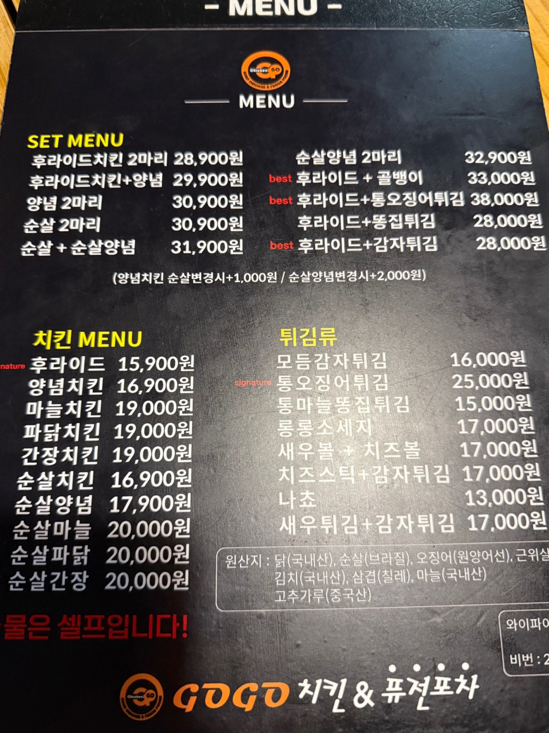 이름이 고고치킨인 만큼 치킨을 안시킬수는 없었어요.