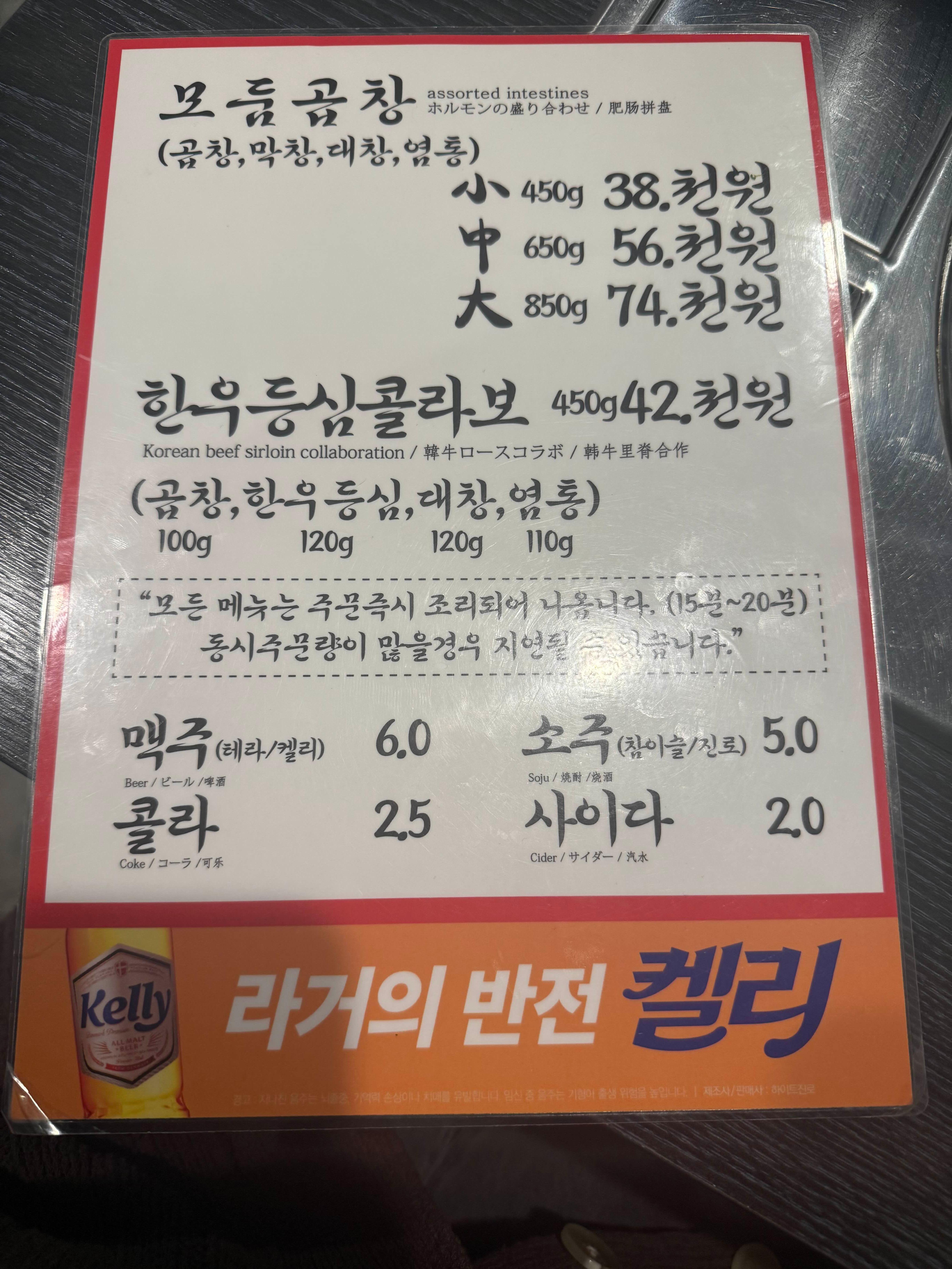 모든 메뉴는 주문즉시 조리되어나오며, 동시 주문량이 많을 경우 시간이 지연될 수 있다고 메뉴판에 적혀있는데