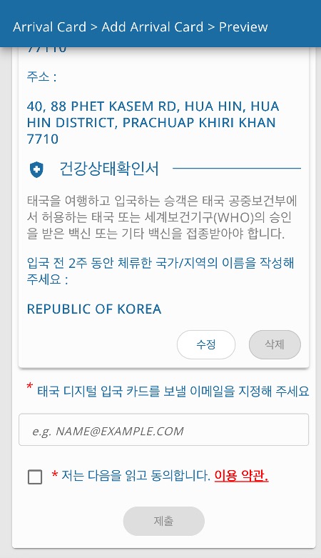 모두 작성 후에 동의하면 작성한 이메일로 입국신고서 파일을 수신할 수 있어요.