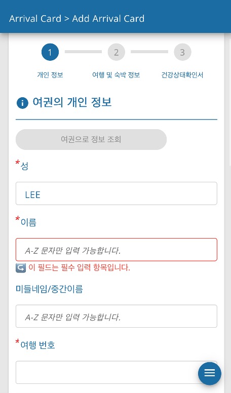 이름과 여행번호(여권번호)를 입력해주세요.