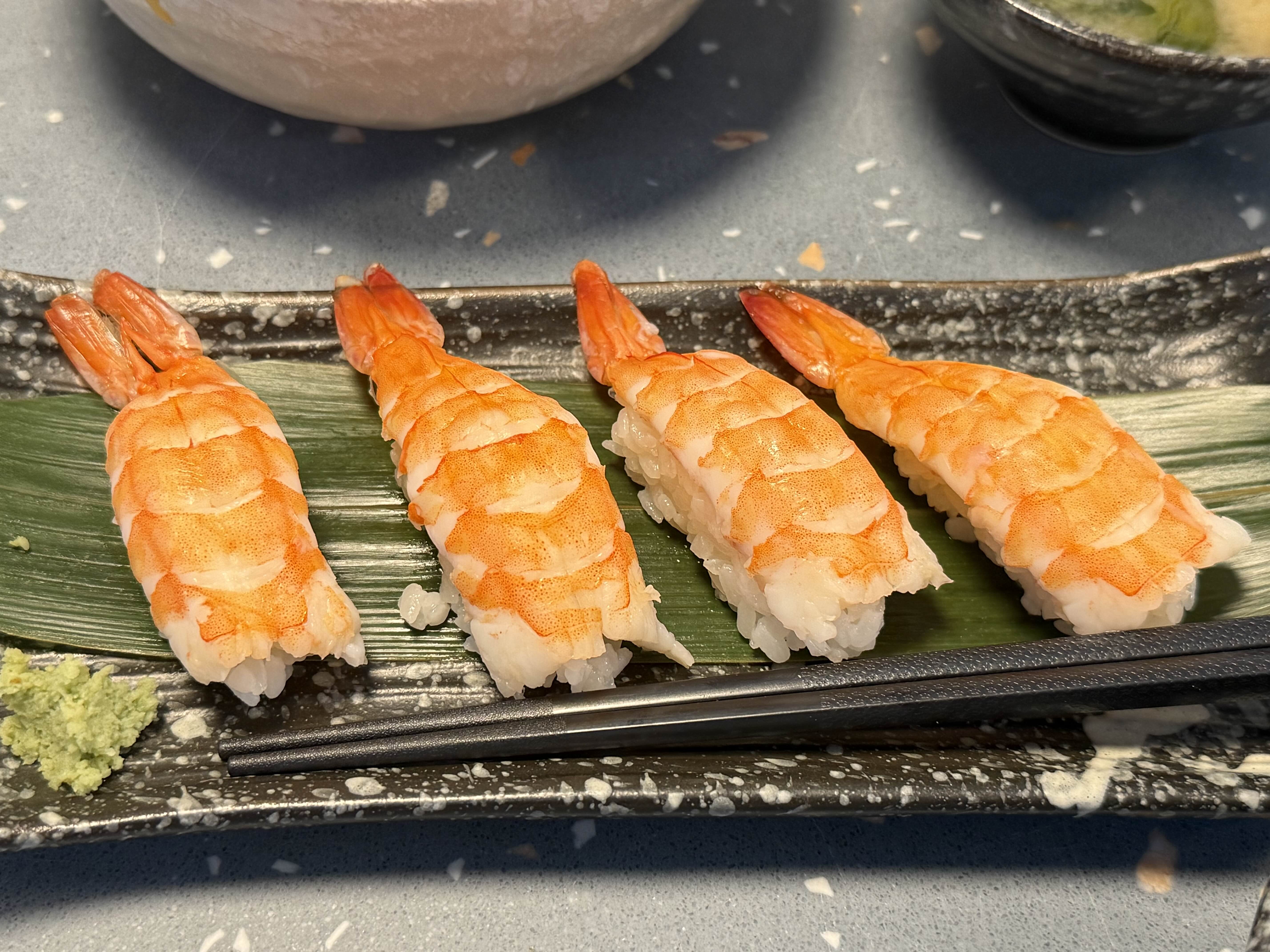 가볍게 규동과 새우초밥, 캘리포니아롤을 주문했어요.