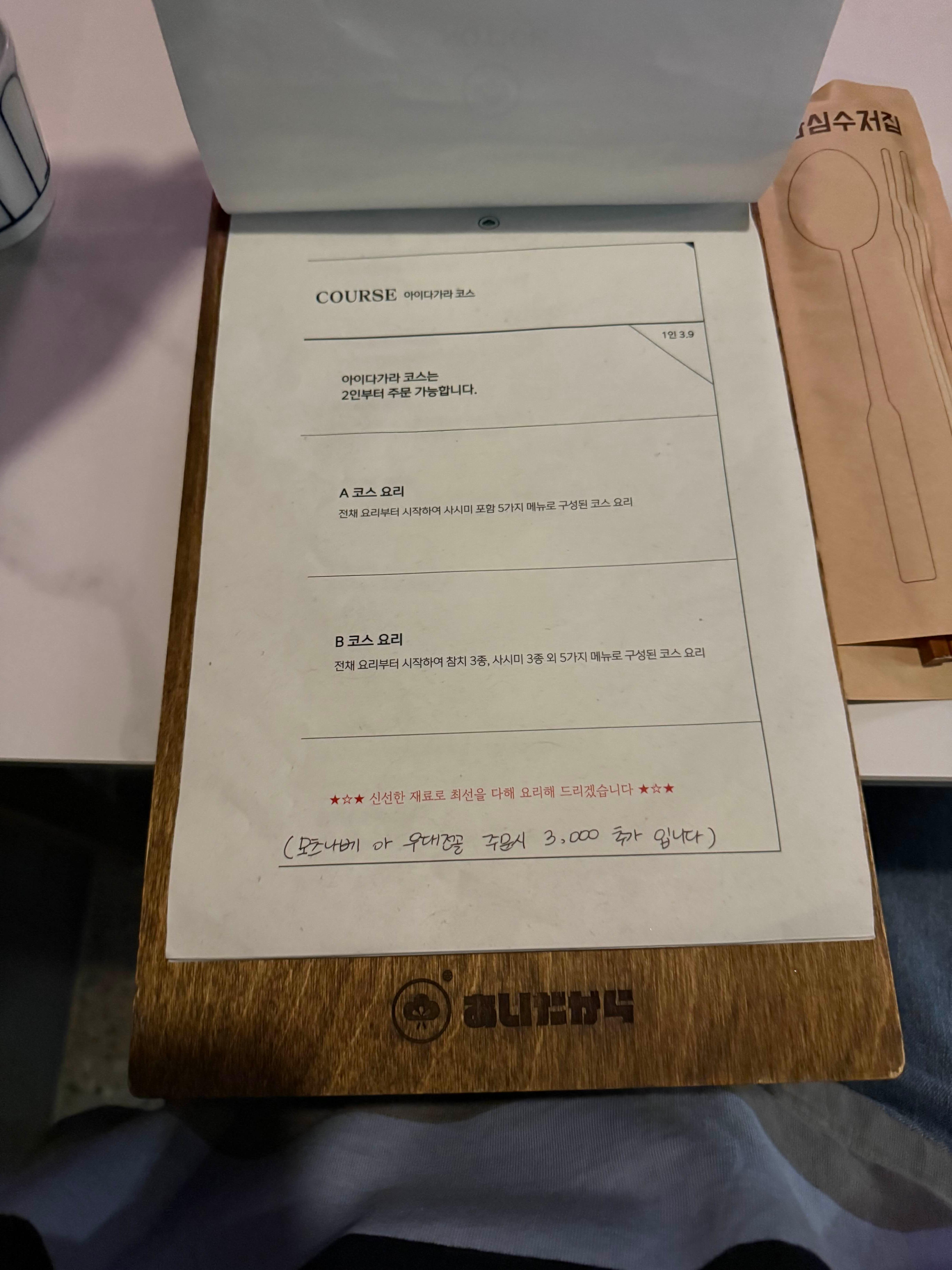 광면이는 모츠나베와 후토마키6피스, 매실,알로에하이볼을 주문했어요.