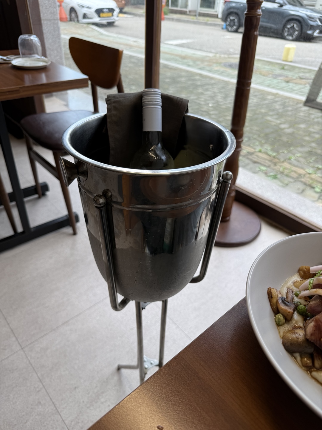 와인은 요로코롬 자리 옆에 얼음바스킷에 준비해주시고요,