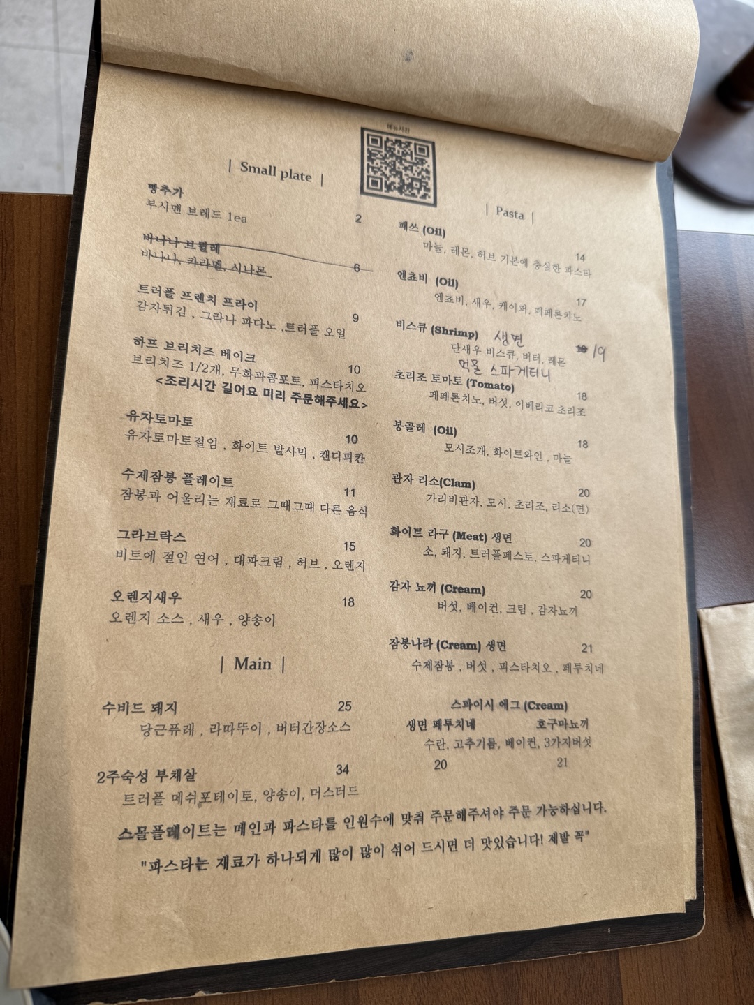 스몰 플레이트를 먹을 까 하다가 파스타가 너무 맛있었어서 하나 더 먹어보기로 합니다.