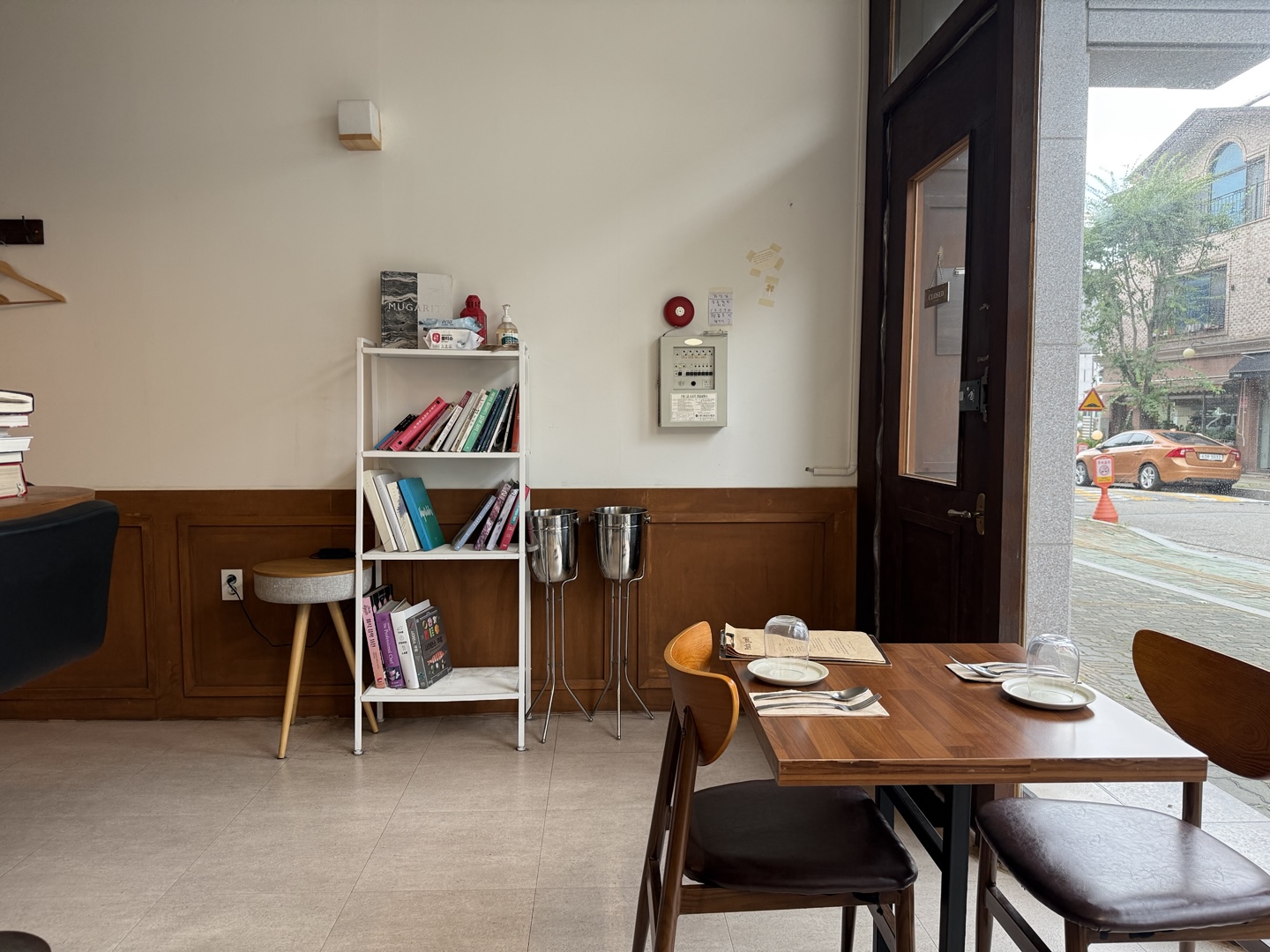 2인 테이블 2개와 바 테이블 자리로 구성되어있어요.